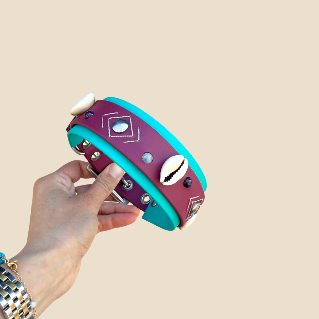 • Collier réalisé en sangle Biothane® de 25mm + 38mm.