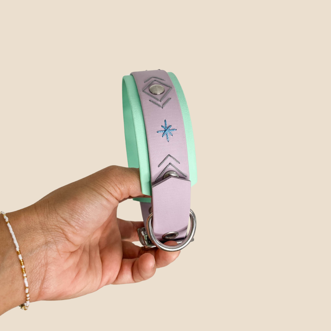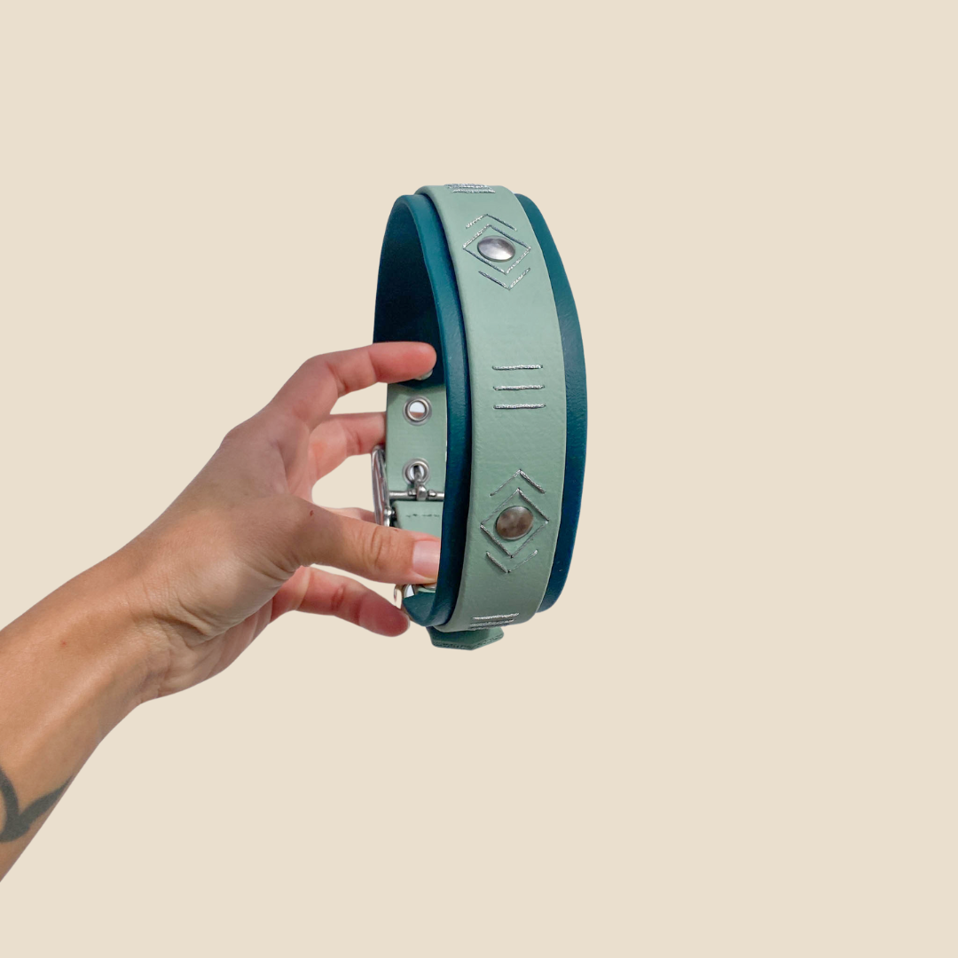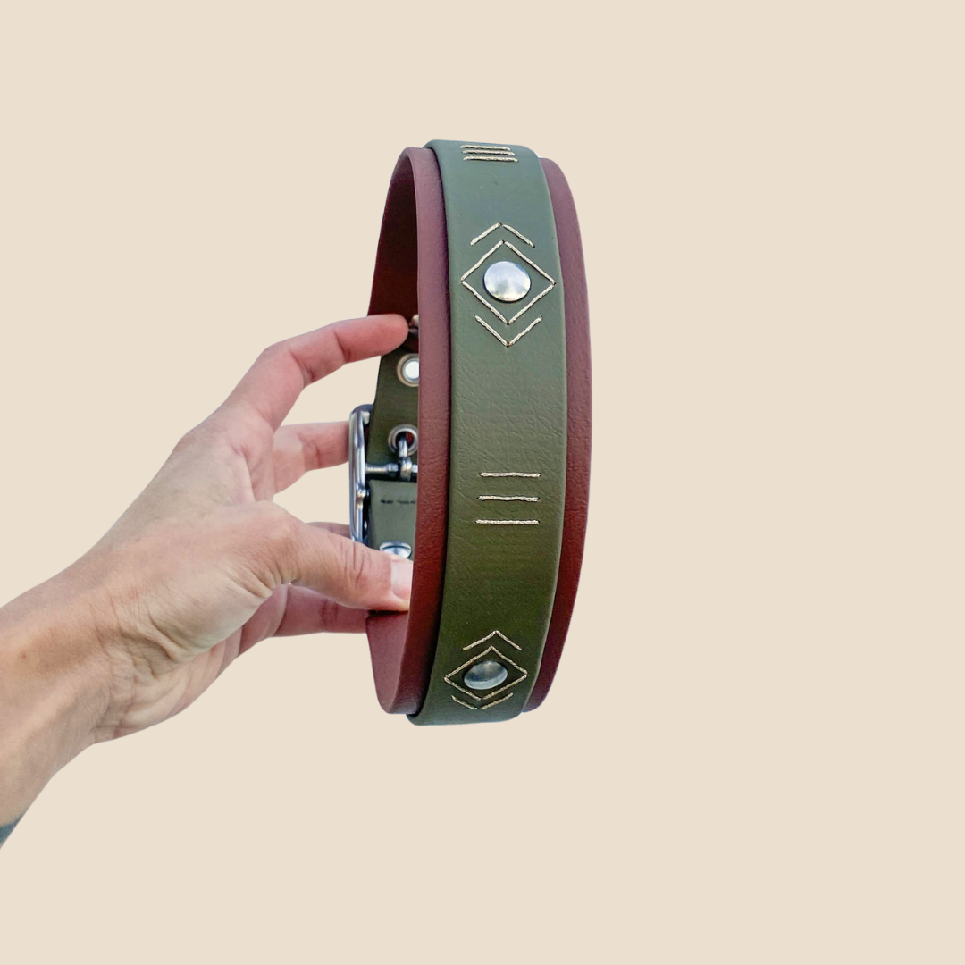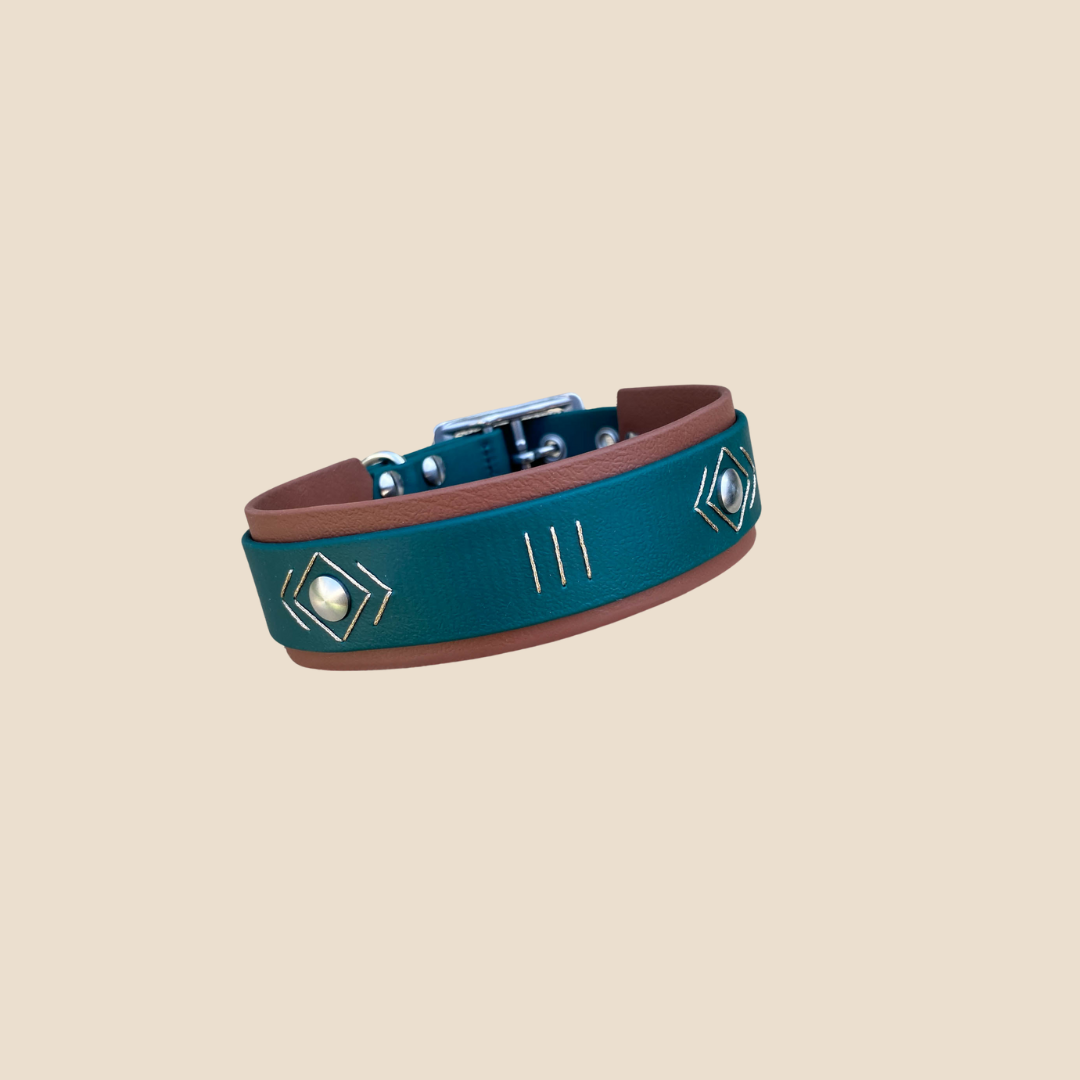 • Collier réalisé en sangle Biothane® de 25mm + 38mm.