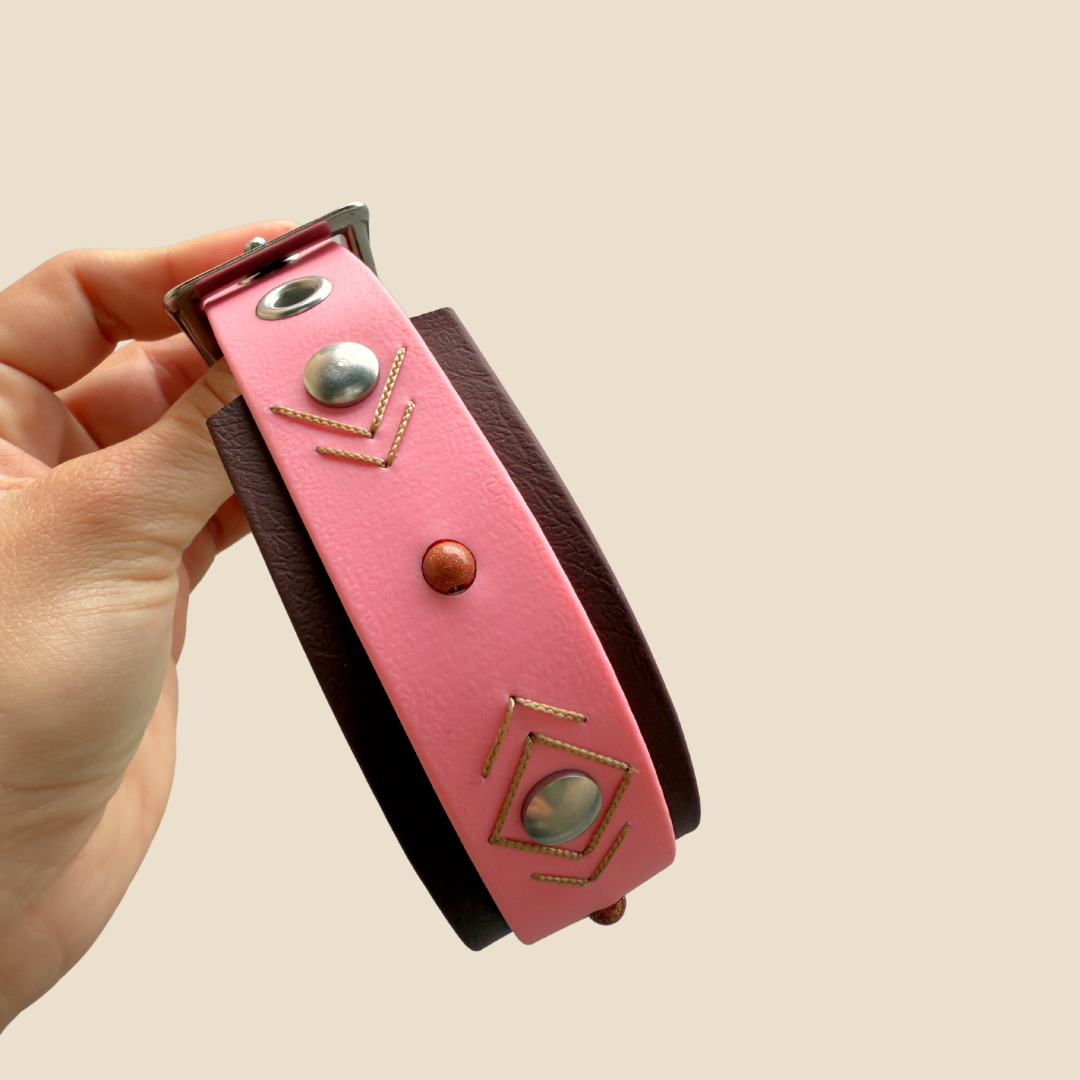 On a trouvé le combo parfait pour toi et ton chien : du Biothane (le vrai, de la marque officielle) et de l’acier inoxydable. Résultat ? Nos créations sont ultra-résistantes. Pas besoin de frotter les boucles ni d’éviter l’eau. Laisse ton chien vivre sa meilleure vie !