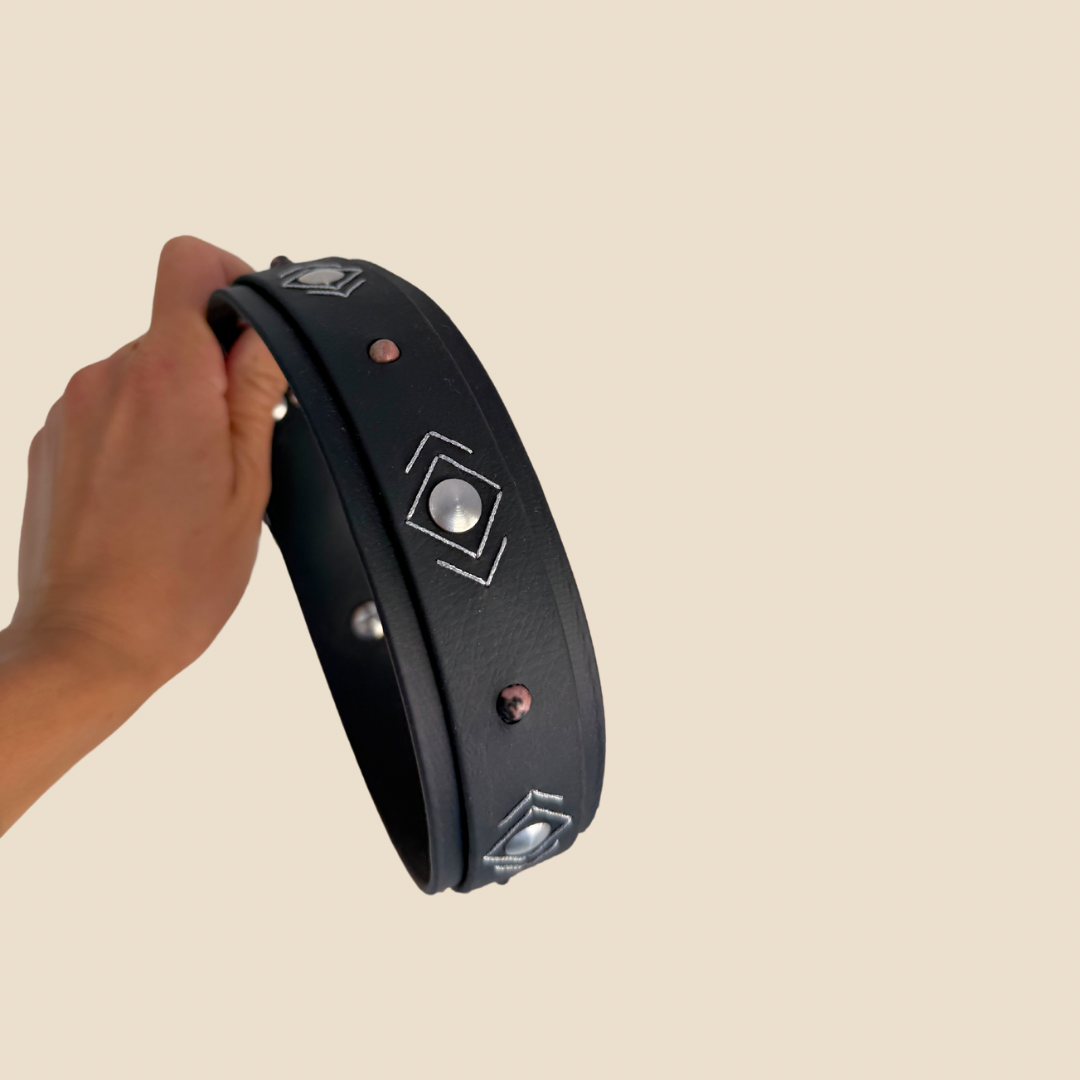 • Collier réalisé en sangle Biothane® de 25mm + 38mm.