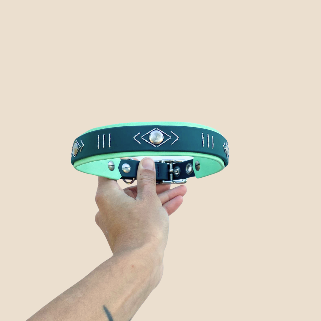 • Collier réalisé en sangle Biothane® de 25mm + 38mm.