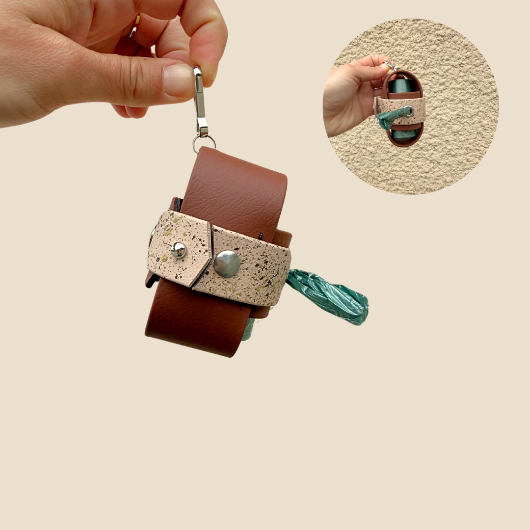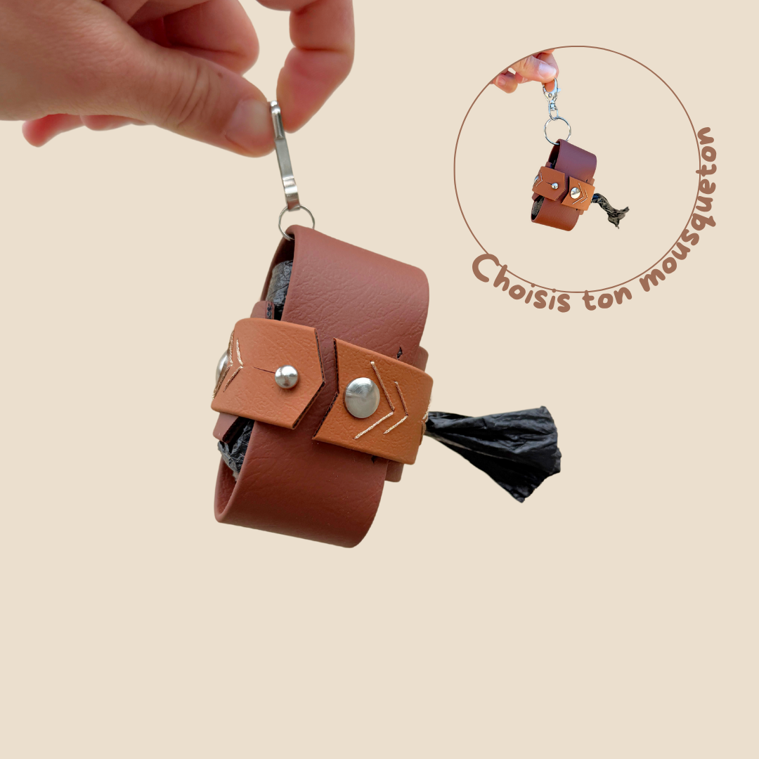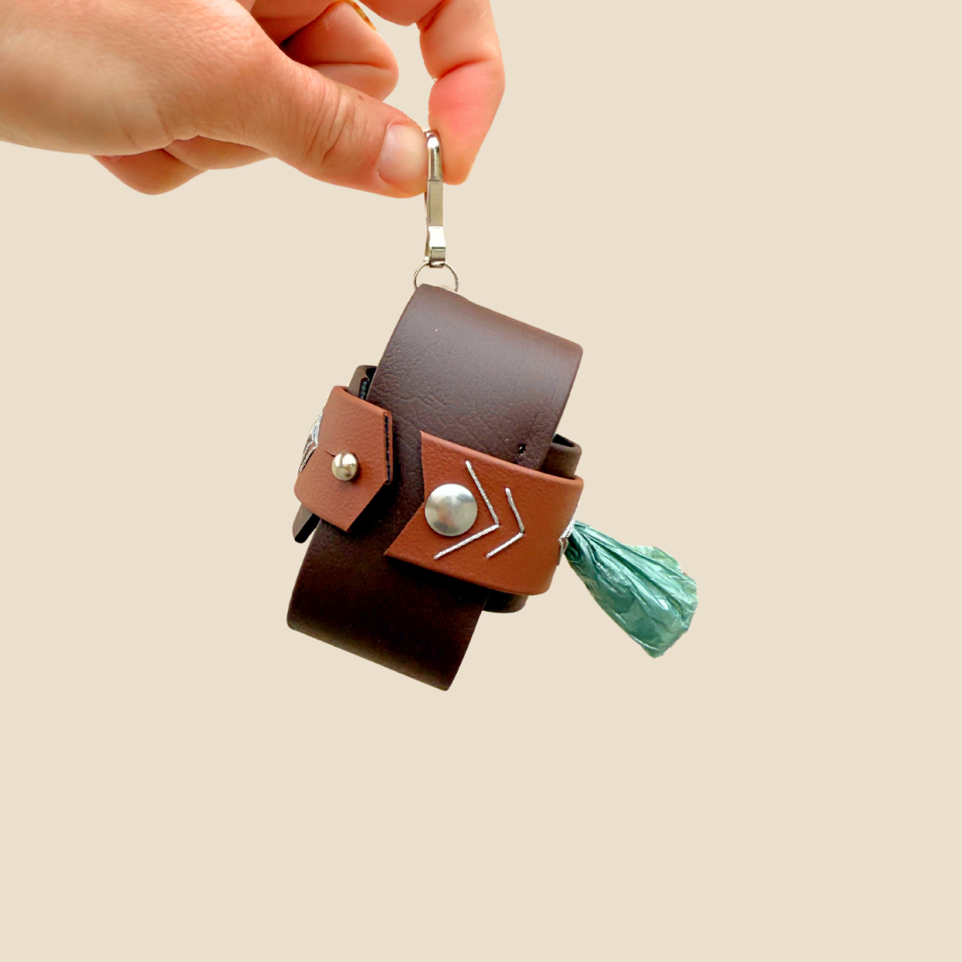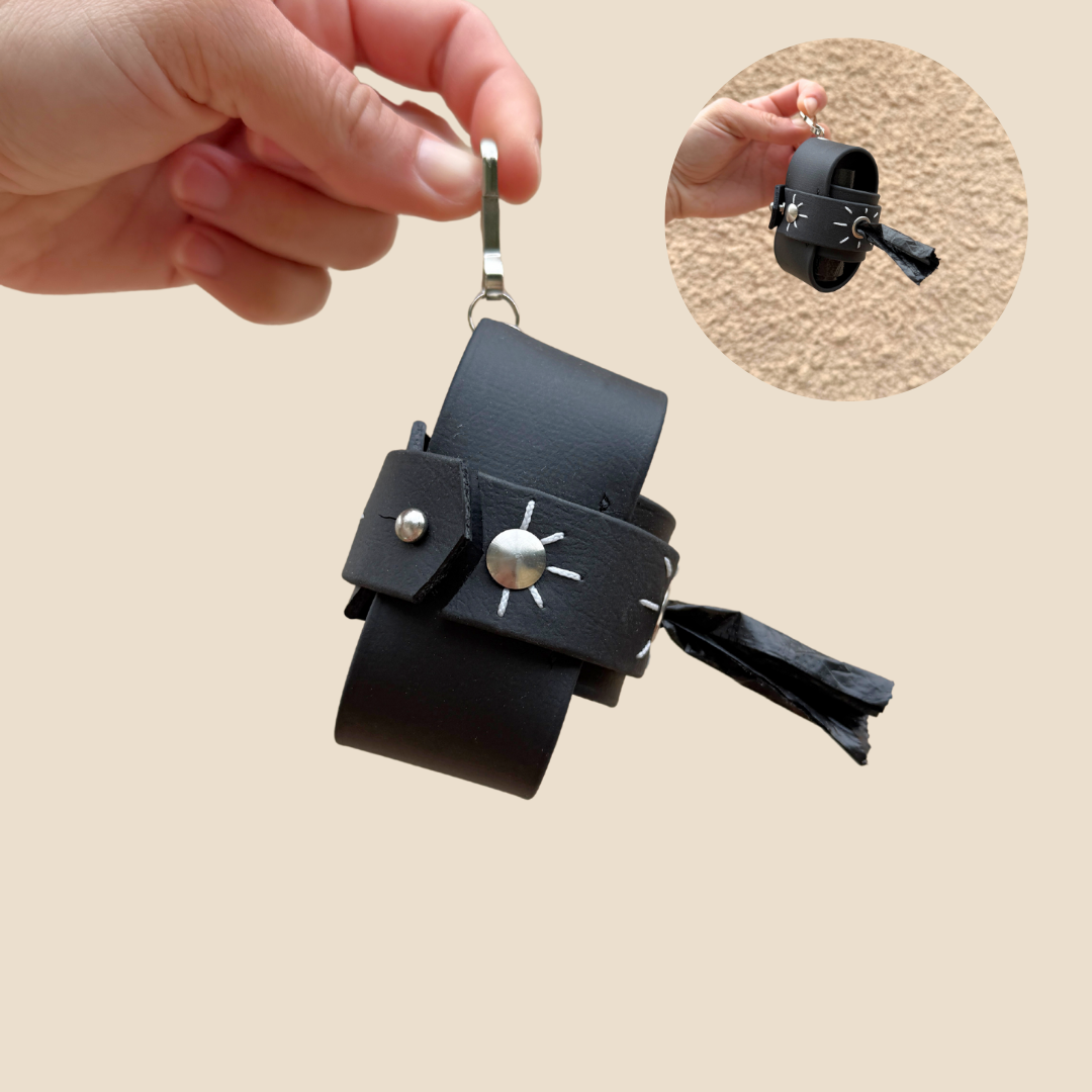 Le Poop Prestige est notre porte-sac revisité : épuré, élégant, et ultra pratique. Fabriqué à la main en biothane résistant à l’eau, il se fixe facilement à ta laisse ou à ton sac. Léger, solide, discret, il t’accompagne partout — sans jamais jurer avec ton look.